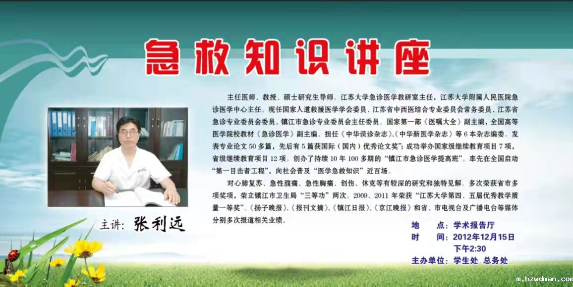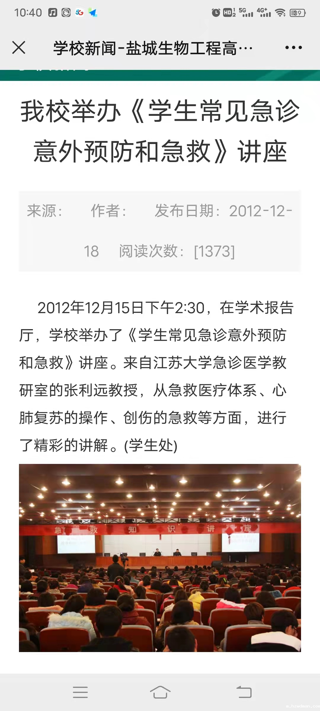 据盐城生物工程高等学校网站报道:2012年12月,该校前瞻性对师生作“急救知识”教育,邀请讲者正是张利远教授。于2001年始,全国率先走出医院,走向社会急救知识普及经验与影响力而获邀。持续20多年公益活动,惠及人民生命,唱响白衣天使崇高品质。在履行“人民至上、生命至上”的今天,其前瞻性行动令人敬佩!