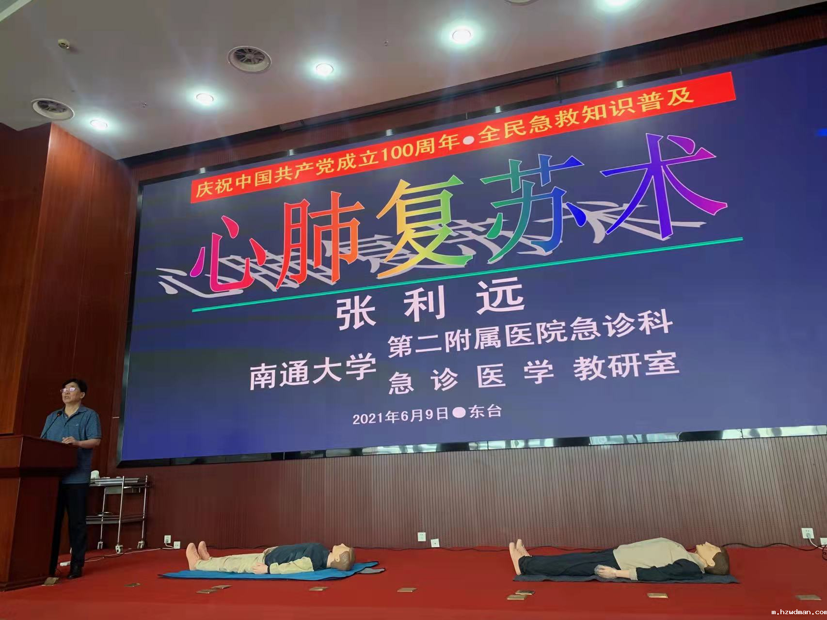 张利远急诊团队急救知识科普“二十年、十六进、七途径、两本书”实践,被《健康报》、《医院管理论坛报》喻为:南通科普新模式”后,迎来各地参观和应邀讲学。2021年6月9日,应东台市邀请,再度赴该市科普,运用理论讲授,演示、心肺复苏操作训练方式,生动形象,深入浅出,通俗易懂,使大家认识到,急救知识要学,不难学,受益匪浅。