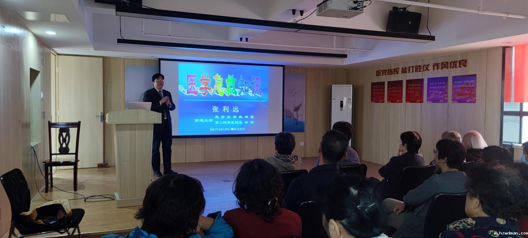 2021年1-9月,急救知识进社区已达14场次。2021年10月19日应邀再次崇川区跃龙社区,张利远医师理论联系实际生动授课,使居民们学习热情高涨…