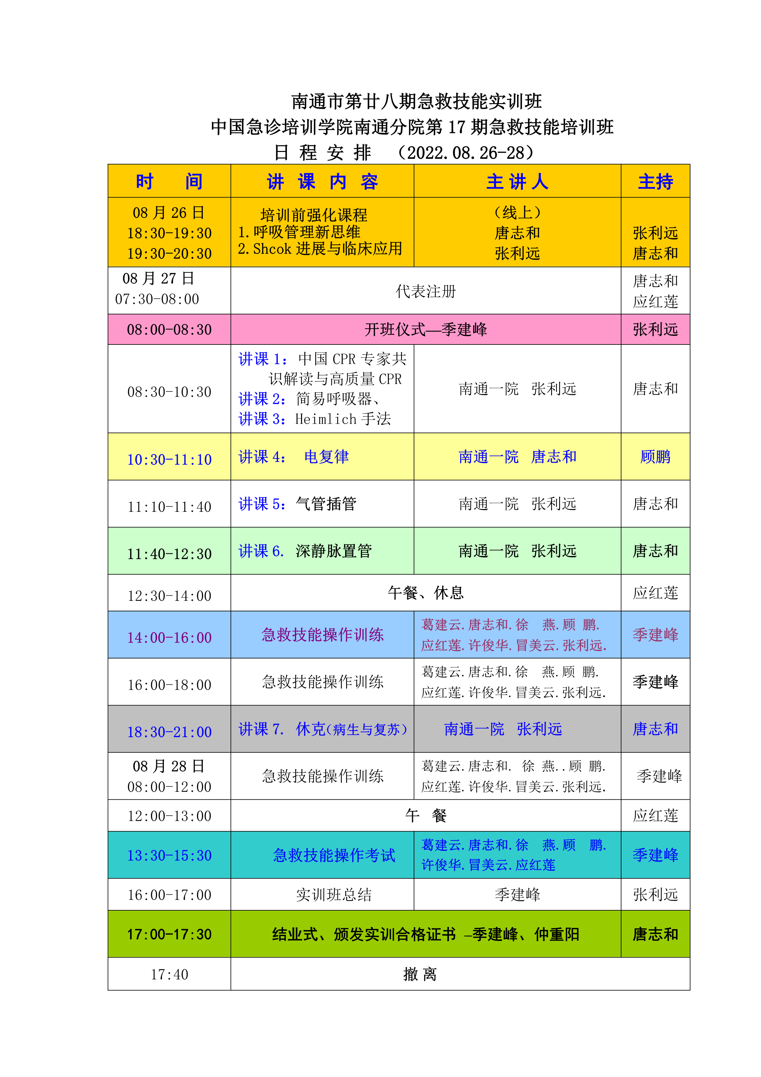 期急救技能实训班”暨“中国急诊培训学院南通分院第 17 期急救技 能培训班”。现将有关事项通知如下: