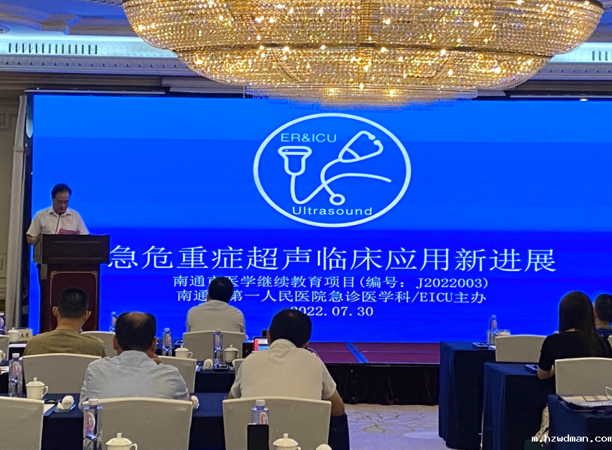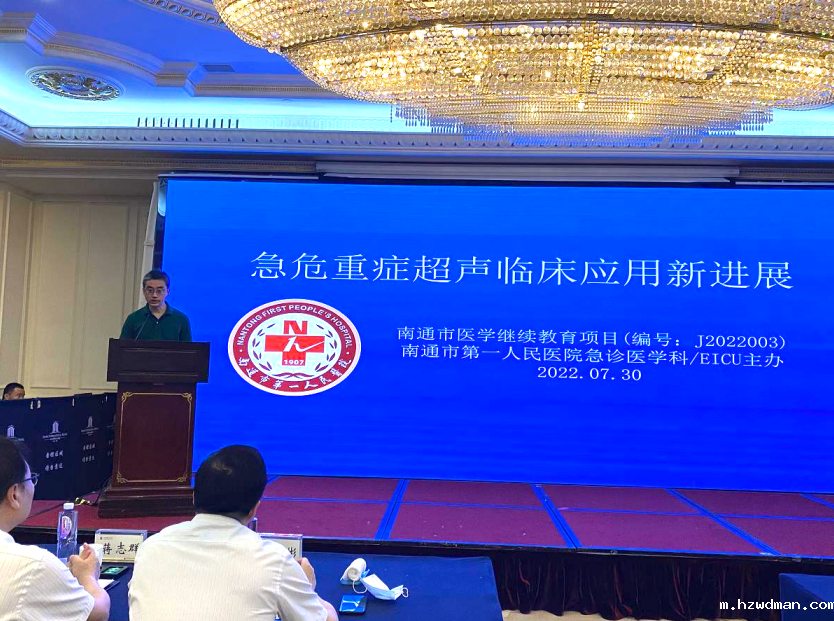 为锋利其刃,并与重症同道共同学习、探讨、进步,华体会hth最新版EICU于2022年7月30日在南通金石国际酒店举办“急危重症超声临床应用新进展”培训班,该培训班为市级继教项目(编号J2022003)。培训班项目负责人为南通一院EICU李峰主任。南通医师协会蒋志群会长、华体会hth最新版储晓彬副院长莅临开幕式致辞,南通三院韩旭东主任、南通大学重症病房陆洋主任、及南通一院EICU的多位专家倾情授课。市直属各大医院重症学科的主任们均列席参加,全市各县市区医院与急诊和重症专业相关的医务人员,约150名通过线下和线上形式参会。