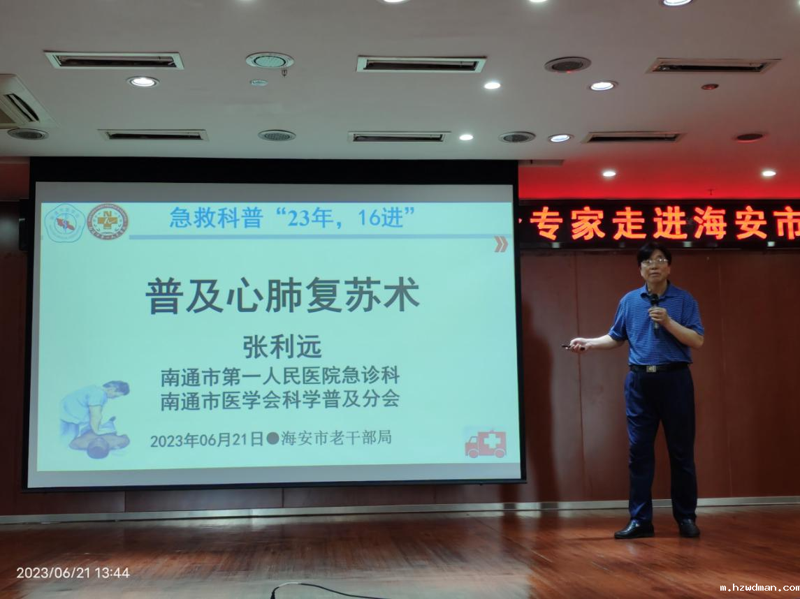 2023.6.21,张利远教授应邀参加医学会组织的“2023年基层巡讲”活动-海安站,给海安市老干部局、海安市海光社区两家单位作了二场科普。