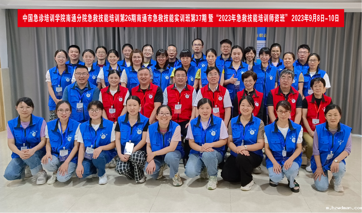 南通急诊医学科质控中心,根据江苏省八部门联合颁发“急救医疗高质量发展意见”文件要求,多年来,为加快推进全市急救医疗高质量发展,持续开展急救技能培训。努力提升各级医院急救技能水平能力。使基本急救技能达到:“谁发现谁急救,哪里发生哪里救,呼救即急救”的目标。在南通市医疗质量控制中心管理办公室指与要求下,华体会hth最新版,联合中国急诊培训学院南通分院、南通市急诊专科华体汇官网下载APP,于2023年10月完成了“第37期急救技能培训班”(自2015年始,每季度举办一期培训班,持续八年)。为提高培训班质量,医院急诊团队,潜心研究与探索,创新“五精”设计、“四严”管理、“三方式”运行的办班模式。暨“五精”设计:①精选教员;②精编教材;③精定内容;④精制方式;⑤精心准备;“四严”管理:①严密组织;②严明纪律;③严谨作风;④严格要求;“三方式”运行:①空间安排:一室一技术;②师资安排:一教员一技术;③时间安排:分小组、定时段。其创新性急救技能培训,被学员们喻为“白+黑”、“严+苦”的 魔鬼”训练。被专家和媒体评价为:新时代高质量的急救技能“五四三”培训“南通模式”。多次应邀在国省级会议作了经验介绍,各地纷纷赴南通观摩学习,正被多地复制与推广。