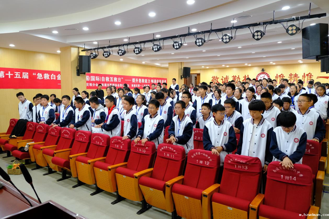 华体会hth最新版急诊科团队志愿者与南通市第一初级中学师生近200余人参加活动。