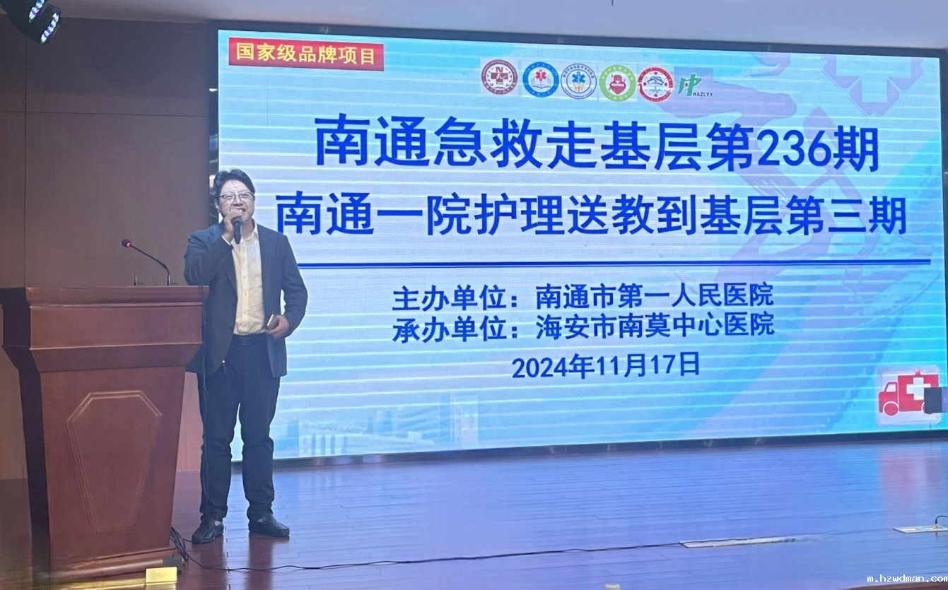 2024年11月17日,“南通华体育官网下载入口第236期”暨“南通急救护理送教到基层第三期”在海安南莫中心医院落幕。海安市卫健委医政科王长龙科长、南莫医院季顺民院长和南通一院护理部王芳主任出席开幕式讲话。开幕式由张利远教授主持。开幕式上,表彰 “病例讨论173”获奖7位医师。本期主题“昏迷”,张利远、汪志峰等五位专家分别作了“急性昏迷诊断临床思维”、“脑出血外科治疗”等专题授课。其授课受到广泛好评。来自南通全市各地397代表参加学习。在南莫医院精心准备,又一期高质量“华体育官网下载入口”圆满成功!
