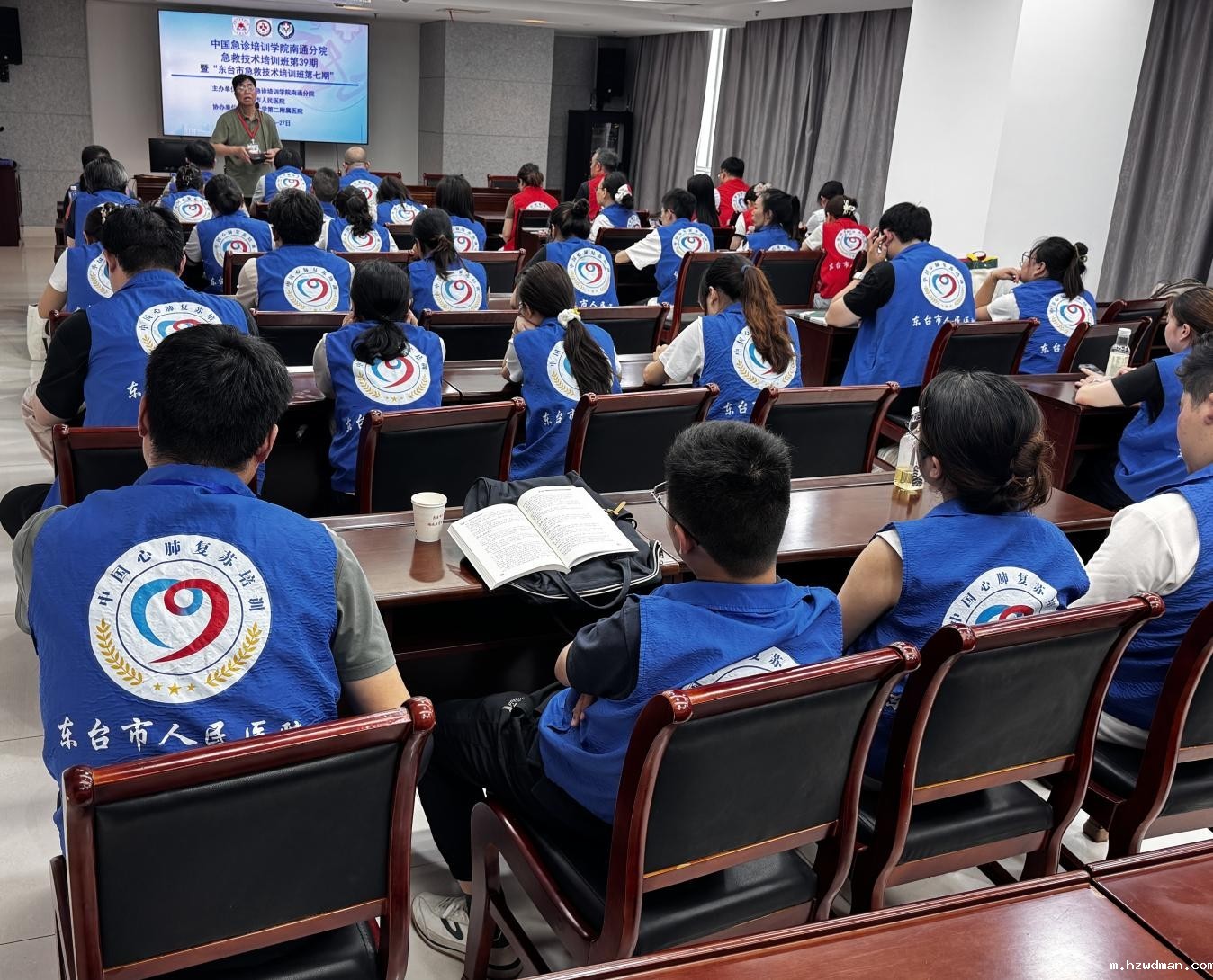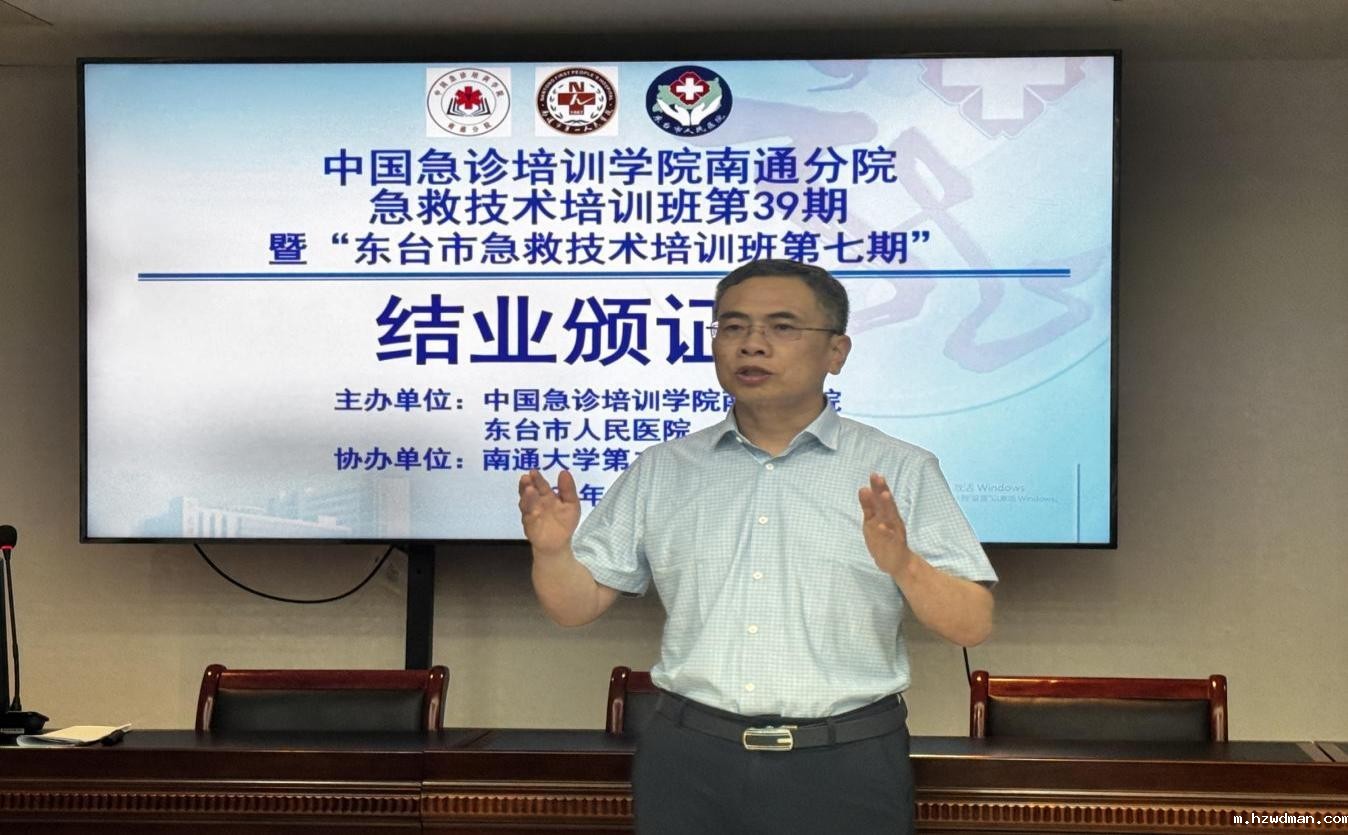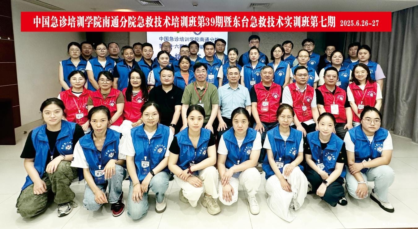 2025年6月26-27日,中国急诊培训学院南通分院“急救技能培训班第39期”暨“东台急救技能实训班第7期”,历时两天(16小时-24课时),于东台市人民医院圆满完成。南通师资张利远、邓继红、崔道然三位赴东台专家参加教学,东台市人民医院杨小进副院长出席开班式讲话,杨爱兵书记出席结业式颁证讲话。本期33名学员,为东台本地18所医院(公立.民营.综合.专科);
